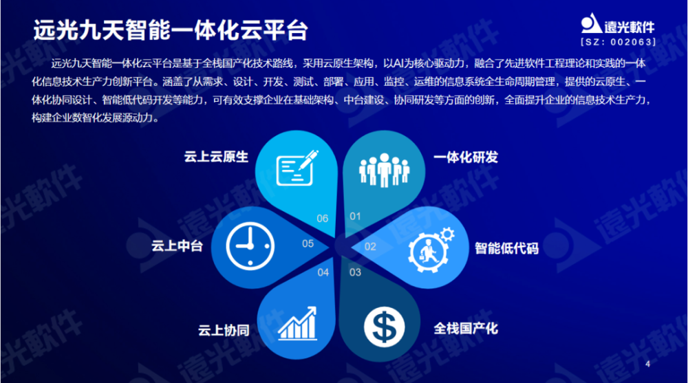 遠光九天云平臺是基于全棧國產(chǎn)化技術路線,采用云原生架構,以AI為核心驅(qū)動力,融合了先進軟件工程理論和實踐的一體化信息技術生產(chǎn)力創(chuàng)新平臺。涵蓋了從需求、設計、開發(fā)、測試、部署、應用、監(jiān)控、運維的信息系統(tǒng)全生命周期管理,提供的云原生、一體化協(xié)同設計、智能低代碼開發(fā)等能力,可有效支撐企業(yè)在基礎架構、中臺建設、協(xié)同研發(fā)等方面的創(chuàng)新,全面提升企業(yè)的信息技術生產(chǎn)力,構建企業(yè)數(shù)智化發(fā)展源動力。