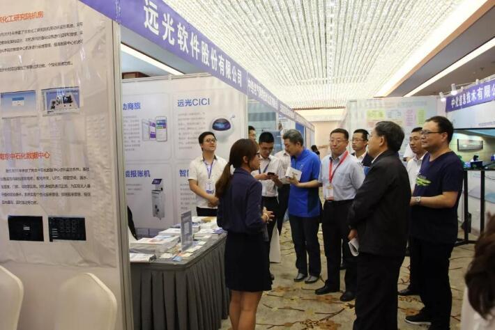 圖注:中國(guó)石油天然氣股份有限公司規(guī)劃總院副院長(zhǎng)葛雁冰、中國(guó)石油集團(tuán)工程技術(shù)研究院有限公司副總經(jīng)理趙彤等領(lǐng)導(dǎo)參觀遠(yuǎn)光軟件展臺(tái)
