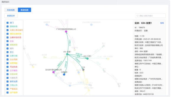 通過遠(yuǎn)光軟件“知識(shí)圖譜應(yīng)用平臺(tái)”的圖譜構(gòu)建模塊,可以將審單過程中需要用到的各種實(shí)體融合到一張圖中,非常直觀的定義各類實(shí)體間的關(guān)系。再通過RPA或外部系統(tǒng)提供的數(shù)據(jù)接口,將實(shí)體所對(duì)應(yīng)的具體數(shù)據(jù)導(dǎo)入,從而形成我們審單所需要的各類知識(shí)。單據(jù)中包含了哪些信息,哪些需要被重點(diǎn)關(guān)注,在圖中一目了然,真正做到了“哪里不清楚點(diǎn)哪里”。最后,將審單規(guī)則配置到圖譜中,就可以實(shí)現(xiàn)報(bào)銷單的自動(dòng)審核。