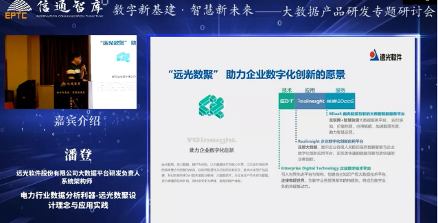 經(jīng)過多年積累,遠(yuǎn)光軟件推出了“遠(yuǎn)光數(shù)聚”智能大數(shù)據(jù)一站式服務(wù)平臺,并以技術(shù)、數(shù)據(jù)、應(yīng)用服務(wù)化為產(chǎn)品動(dòng)因,研發(fā)系列產(chǎn)品,如企業(yè)數(shù)字化創(chuàng)新應(yīng)用平臺Realinsight、能源大數(shù)據(jù)服務(wù)平臺BDaaS等,致力于幫助企業(yè)實(shí)現(xiàn)數(shù)字化管理和創(chuàng)新。潘登向嘉賓們詳細(xì)介紹了“遠(yuǎn)光數(shù)聚”的設(shè)計(jì)理念,以及為電力行業(yè)提供高效、精準(zhǔn)數(shù)據(jù)分析的應(yīng)用實(shí)踐。