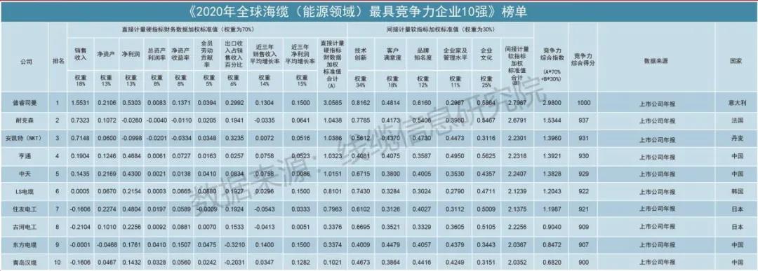 全球海纜(能源領域)最具競爭力企業(yè)10強榜單第四位
