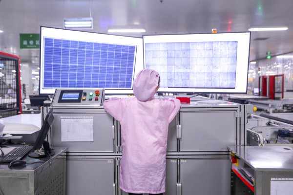 正泰新能源海寧工廠,工人正在進(jìn)行光伏組件EL檢測(cè)工序