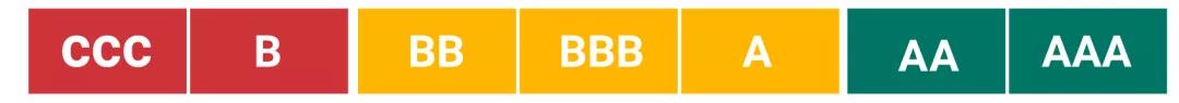 MSCI根據(jù)從公開渠道收集到的ESG數(shù)據(jù),對被評公司ESG績效和管理水平打分?;谕袠I(yè)表現(xiàn)對比,被評公司的ESG得分會按照一定標準對應到CCC、B、BB、BBB、A、AA、AAA七個等級。