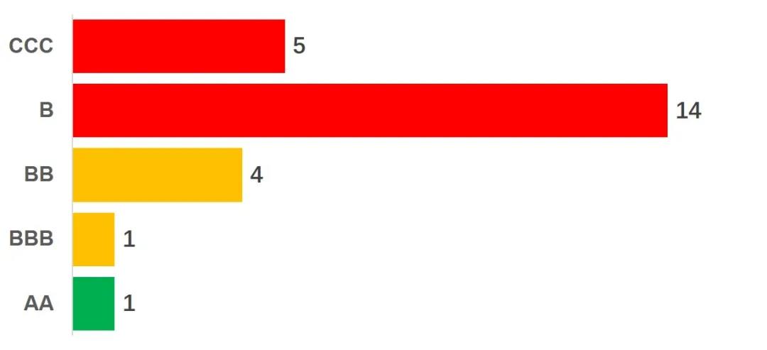 • 在評級保持不變的7家公司中,有4家仍然處于行業(yè)落后位置(3家B級、1家CCC級),有3家處于行業(yè)平均位置(2家BBB級、1家BB級)。