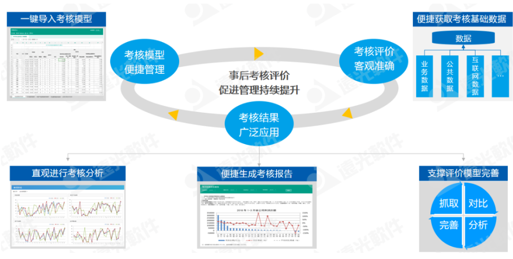 遠光全面預(yù)算管理解決方案支持一鍵導(dǎo)入預(yù)算考核模型,通過設(shè)置取數(shù)公式,自動獲取各單位的考核基礎(chǔ)數(shù)據(jù),通過模型內(nèi)置的考核計算方法得到各單位各項考核指標(biāo)的得分和排名數(shù)據(jù),實現(xiàn)整個評分過程的自動處理。