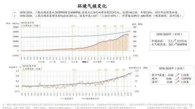 另外一個是環(huán)境的挑戰(zhàn)。環(huán)境和氣候的變化,這里有一個歷史的觀測記錄,從1850年開始到現在,170多年,看到全世界的碳排放不斷在增加,從最初的每年2.2億噸碳排放到現在的323億噸,所以對環(huán)境產生很大的壓力。同時也可以看到,同時期觀測到的地球二氧化碳的含量也是不斷在攀升,從原來的285PPM到現在的409PPM。下面這張圖可以看出,隨著碳濃度的增加,相應的全世界的平均氣溫也在增加,幾乎跟大氣碳濃度水平是同步的,這樣的氣候產生的嚴重結果就是天氣災害頻發(fā),這是環(huán)境的挑戰(zhàn)。