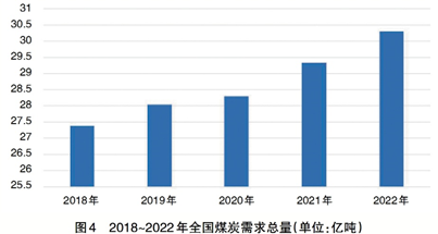 近五年來(lái),全國(guó)煤炭消費(fèi)總量隨著GDP增長(zhǎng)同步逐年上升,2022年預(yù)計(jì)達(dá)到30.3億噸標(biāo)準(zhǔn)煤(見(jiàn)圖4)。