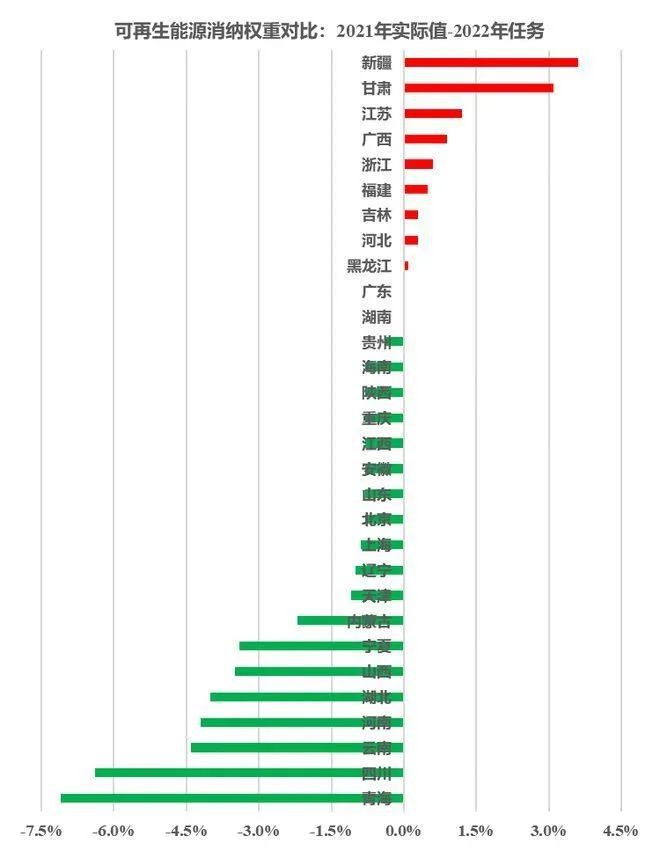 青海、山西、寧夏、內蒙古等大多數(shù)省份,2021年的消納權重水平已經達到了2022年消納責任權重目標,甚至達到了2023年的要求,完成壓力不大。