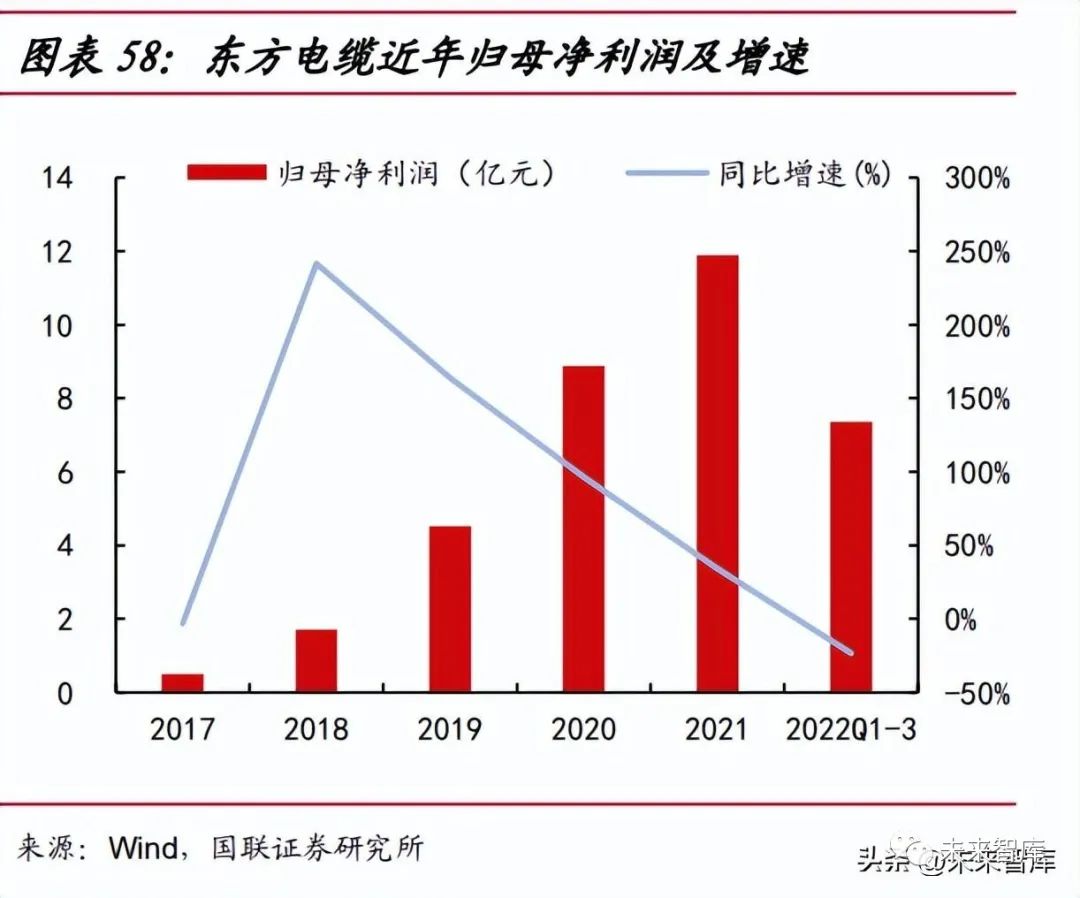 全國(guó)海纜龍頭,營(yíng)收利潤(rùn)同步增長(zhǎng)。公司作為國(guó)內(nèi)電線電纜龍頭企業(yè),業(yè)務(wù)全面 覆蓋陸纜系統(tǒng)、海纜系統(tǒng)、海洋工程三大產(chǎn)品領(lǐng)域,并在高端線纜專(zhuān)業(yè)領(lǐng)域?qū)崿F(xiàn)多項(xiàng) 技術(shù)突破。2022 年前三季度,公司營(yíng)業(yè)收入同比下滑 1.88%,歸母凈利潤(rùn)同比下滑 23.43%, 主要由于國(guó)內(nèi)海風(fēng)搶裝潮的結(jié)束及疫情影響需求,部分海纜項(xiàng)目交付延后,導(dǎo)致主營(yíng) 業(yè)務(wù)中海纜系統(tǒng)收入有所下滑。