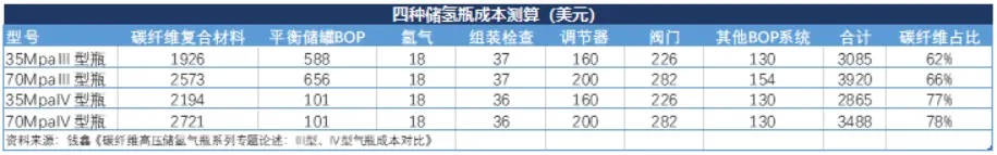 從儲(chǔ)氫瓶的發(fā)展趨勢(shì)看,70Mpa的Ⅳ型瓶將是主流,最主要的成本大頭是碳纖維。