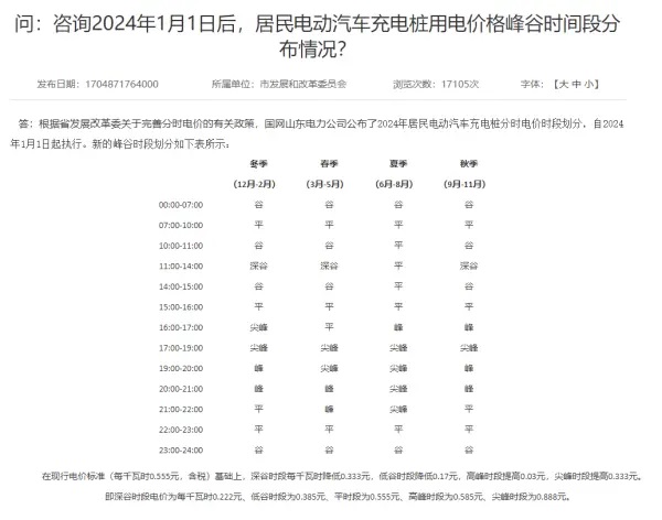 上圖是山東居民電動(dòng)充電樁的分時(shí)段電價(jià)。由于光伏發(fā)電的大規(guī)模推廣,在春秋冬三季,中午11點(diǎn)到14點(diǎn),出現(xiàn)了深谷電價(jià),每度電只有0.222元,假如家庭自備充電樁,在深谷充電,純電汽車按百公里電耗15度計(jì)算,每百公里電動(dòng)車電費(fèi)是3.33元,折合一公里不到4分錢。如果用油,家用車一般百公里8升,按照8塊錢每升,折合一公里要6毛4分錢,中間差了10倍還要多。