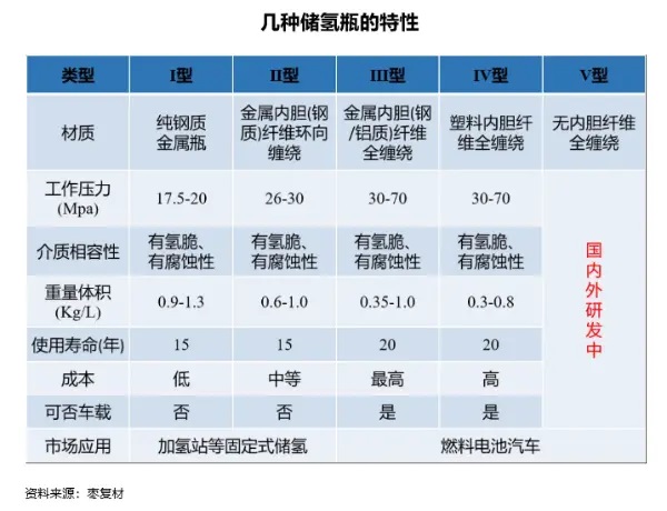 儲(chǔ)氫瓶目前主流的是Ⅲ型瓶,壓力35Mpa的一個(gè)瓶子大概2萬(wàn)左右,一輛車要用8個(gè),也就是16萬(wàn)。