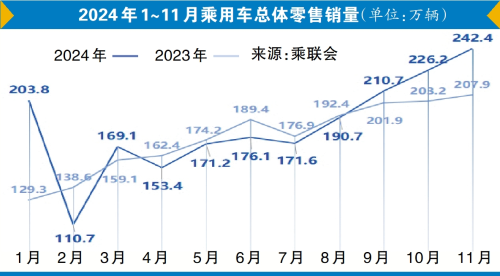 7月新能源汽車滲透率首次突破50%大關(guān),提前實(shí)現(xiàn)了國(guó)家設(shè)定的目標(biāo);11月14日,中國(guó)新能源汽車的產(chǎn)量首次突破年度1000萬輛,是全球首個(gè)新能源汽車年度產(chǎn)量達(dá)到1000萬輛的國(guó)家;在“兩新”(大規(guī)模設(shè)備更新和消費(fèi)品以舊換新)政策的強(qiáng)力拉動(dòng)下,我國(guó)乘用車產(chǎn)銷11月首次突破了300萬輛……