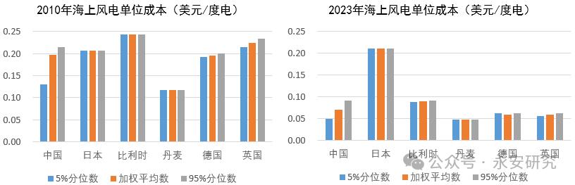 圖5、全球海上風(fēng)力平準(zhǔn)化度電成本(美元/度電)