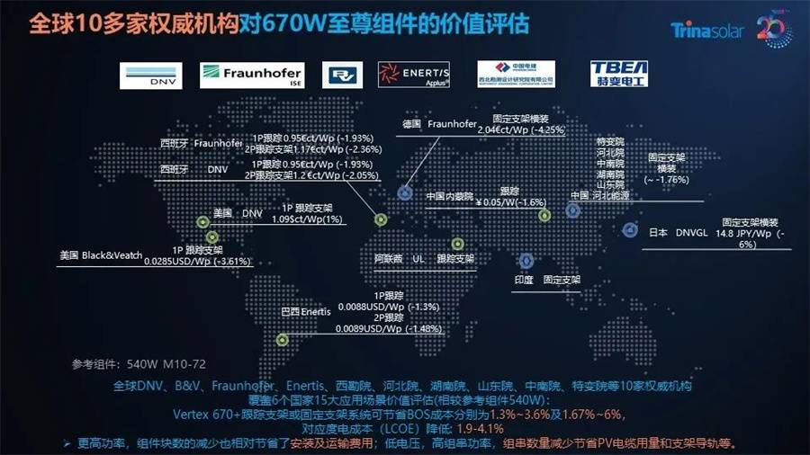除此之外,DNV、拉美Enertis、北美Black&Veatch、西勘院等十余家國內(nèi)外權(quán)威機(jī)構(gòu)在全球范圍內(nèi)對600W+高功率組件進(jìn)行了廣泛的價(jià)值分析,覆蓋了15大應(yīng)用場景。