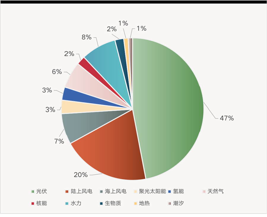 該機(jī)構(gòu)還預(yù)測,到2050年,光伏將在全球電力裝機(jī)中的占比達(dá)到47%,風(fēng)電占比為27%。