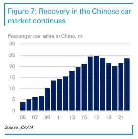 2022年,中國的汽車銷量超過了前兩年。與2021年相比,2022年中國乘用車銷量增長9.5%。從絕對值來看,中國乘用車銷量從2021年的2150萬輛增長到2350萬輛。因此,中國進一步擴大了其作為世界最大汽車市場的地位。盡管此前受到了疫情的影響,但2022年和2021年中國在產(chǎn)量方面仍實現(xiàn)了增長,這對生產(chǎn)和需求產(chǎn)生了一定影響,這一點值得注意。