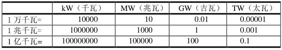 1 TWh=10億千萬時 ; 1萬千瓦=0.01GW ; 1 GW=100萬千瓦