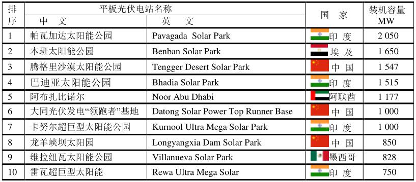 全球十大平板光伏電站