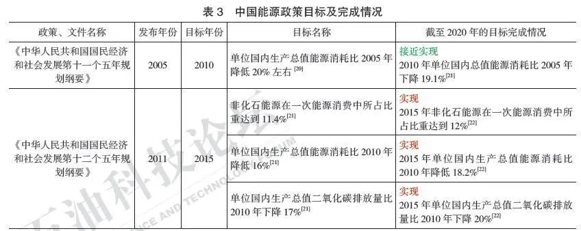 截至2020年,從中國主要能源政策目標(biāo)的完成情況可以看出:(1)中國作為世界能源生產(chǎn)、消費第一大國,在能源消費總量控制、非化石能源消費比例以及單位國內(nèi)生產(chǎn)總值能耗和碳排放方面的目標(biāo)完成情況良好;(2)交通能效及新能源汽車產(chǎn)業(yè)指標(biāo)完成情況不理想。