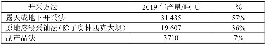 鈾礦開采方法主要有露天開采、地下開采和原地浸出采鈾三種方法。