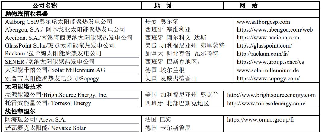 世界著名的太陽(yáng)能聚焦熱發(fā)電公司