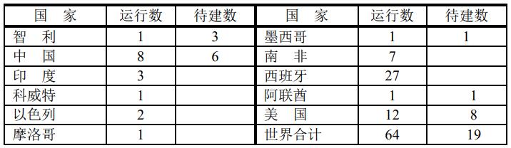 世界各國(guó)太陽(yáng)能聚焦熱電站數(shù)量