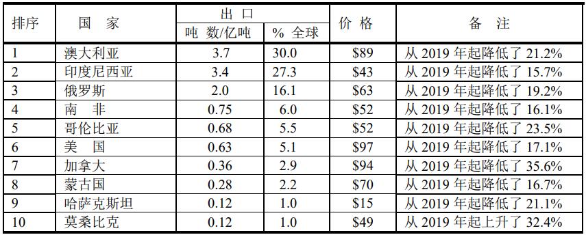 2020年煤出口前10位國(guó)家