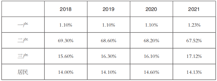 表2 2018~2021年全社會用電結(jié)構(gòu)