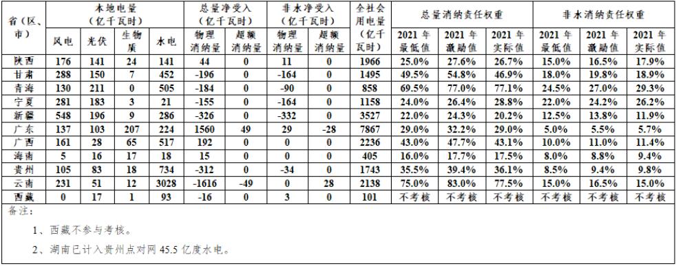 2021年可再生能源電力消納責(zé)任權(quán)重完成情況通報