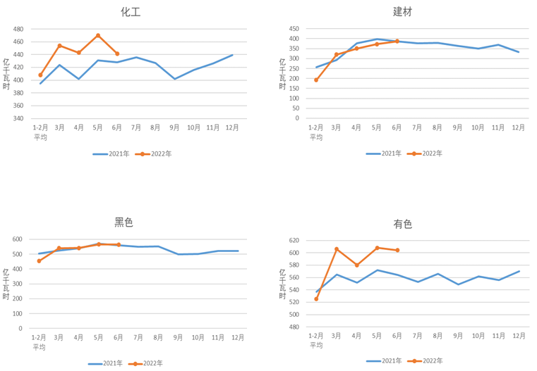 圖4 2021、2022年重點(diǎn)行業(yè)分月用電量情況
