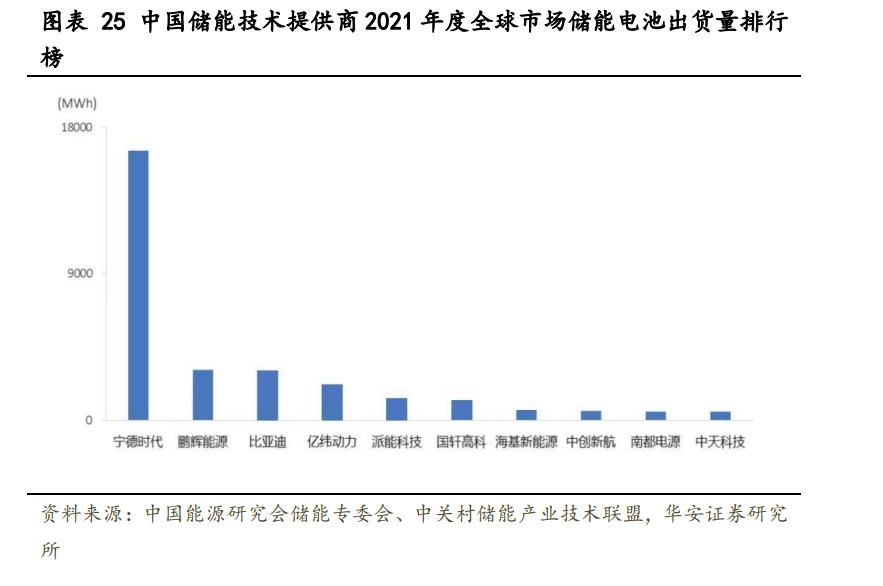 與動(dòng)力和大儲(chǔ)相比,戶用儲(chǔ)能對電芯技術(shù)的要求相對放寬。戶用場景對電池能量密 度等要求相對較低,影響用戶體驗(yàn)的主要是產(chǎn)品整體設(shè)計(jì),包括電池管理和全屋能源調(diào) 配等,對電芯性能的要求相對放寬,主要強(qiáng)調(diào)安全性和降本。 封裝路線尚無定型。戶用儲(chǔ)能系統(tǒng)規(guī)模在 10kWh 級(jí)別,大圓柱電池(單體容量 10Ah50Ah),方形(50Ah-300Ah),軟包(30Ah-80Ah)方案均有公司選用,目前戶儲(chǔ)采用的 電芯封裝路線并無定型。 小電芯或?qū)⒊蔀閼魞?chǔ)主流。當(dāng)前歐洲戶儲(chǔ)市場正經(jīng)歷低壓向高壓系統(tǒng)的產(chǎn)品迭代。 高電壓平臺(tái)可降低電流,從而控制系統(tǒng)發(fā)熱量,提高放電效率。儲(chǔ)能系統(tǒng)容量不變的情 況下,高壓系統(tǒng)對應(yīng)的電芯容量減小。例如,低壓平臺(tái)儲(chǔ)能電芯多為 100Ah,高壓平臺(tái)逐 漸向 50Ah 過渡。100Ah 以下小容量電池在戶用家儲(chǔ)領(lǐng)域仍有較長的應(yīng)用生命周期。 目前我國主要儲(chǔ)能電池提供商多為動(dòng)力電池制造商。根據(jù) GGII 統(tǒng)計(jì),2021 年國內(nèi) 儲(chǔ)能電池出貨量 48GWh,其中電力儲(chǔ)能電池出貨量 29GWh,同比增長 339%;而根據(jù)全球 研究機(jī)構(gòu) EVTank 與伊維經(jīng)濟(jì)研究院共 2021 年全球儲(chǔ)能電池出貨量 66.3GWh,同比增長 132.6%,電力系統(tǒng)儲(chǔ)能是主要增量貢獻(xiàn)。2021 年,全球市場中,儲(chǔ)能電池出貨量排名前 十位的中國儲(chǔ)能技術(shù)提供商,依次為:寧德時(shí)代、鵬輝能源、比亞迪、億緯動(dòng)力、派能 科技、國軒高科、海基新能源、中創(chuàng)新航、南都電源和中天科技。