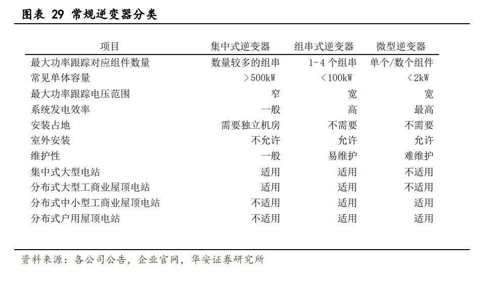 組串 PCS 彌補集中式不足,開啟規(guī)?;瘧?yīng)用。業(yè)內(nèi)目前電池儲能系統(tǒng)主要采取集中 式 PCS,多組電池并聯(lián)將引起電池簇之間的不均衡,久之并聯(lián)電池簇中會出現(xiàn)一部分電 池實際出力不足,而另一部分超出倍率使用的現(xiàn)象,造成“木桶”效應(yīng);而組串式 PCS 可 以實現(xiàn)簇級管理,提升系統(tǒng)壽命,提高全壽命周期放電容量,規(guī)模化應(yīng)用趨勢已見雛形。 當(dāng)前市場以組串式逆變器為主,微型逆變器尚處于發(fā)展階段。綜合考慮逆變器的不同技 術(shù)并結(jié)合其市場策略做出選擇的背景下,當(dāng)前組串式逆變器仍是市場較為主流選擇。目 前,華為、陽光電源、固德威、錦浪科技等光伏逆變器的核心供應(yīng)商均在組串式逆變器 有布局。而微型逆變器作為一種新的技術(shù)路線尚處于發(fā)展期,技術(shù)門檻較高,供應(yīng)商較 少。國外的微型逆變器市場發(fā)展較早,但出貨仍集中于海外龍頭 Enphase。我國微型逆變 器供應(yīng)商較少,一方面是因為國內(nèi)相關(guān)技術(shù)研發(fā)較晚,另一方面是因為國內(nèi)市場對于微 型逆變器的需求處于導(dǎo)入階段,尚未進(jìn)入放量階段。