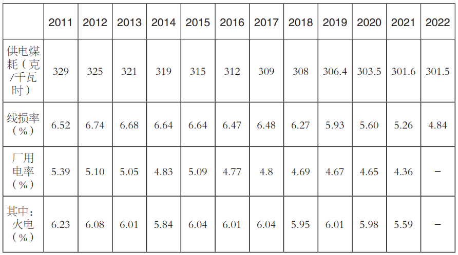 表9 2011—2022年6000千瓦及以上電力行業(yè)能耗情況