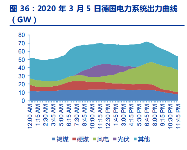 煤電是當前潛力最大的靈活性資源之一。截止 2022 年底我國煤電裝機已突破 12 億千 瓦,后續(xù)仍將保持一定規(guī)模的建設(shè)。但我國煤電靈活性較差,純凝機組不經(jīng)過改造最低出 力一般只有額定容量的 50%左右,熱電聯(lián)產(chǎn)機組在供熱期則更差。如果通過改造將最低出 力降低至 25%則可以釋放出僅 5 億千瓦調(diào)節(jié)能力,大約相當于 250GW 抽水蓄能,是現(xiàn)存 抽蓄調(diào)節(jié)能力的 5 倍。德國 2021 年煤電利用小時數(shù) 3664 小時,其中硬煤 4980 小時,褐 煤 2346 小時,中國 2022 年利用小時數(shù)達到近 4700 小時,仍有進一步下降空間;(2) 以日內(nèi)波動來看,德國 2020 年 3 月 5 日晚間風電出力大幅增加,從午間約 7GW 大幅增 加至晚間超過 28GW,硬煤發(fā)電迅速從最高 10.7GW 調(diào)減至不足 3GW,日內(nèi)壓低負荷到 30%以下,為新能源消納做出巨大貢獻。