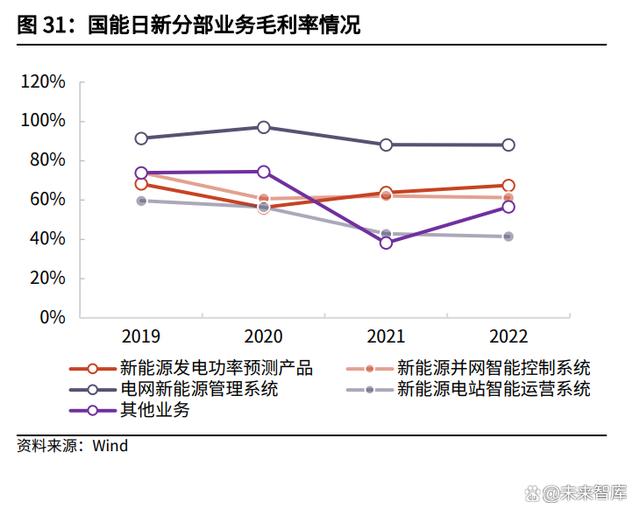 分部業(yè)務(wù)和毛利率微電網(wǎng)產(chǎn)品和系統(tǒng)業(yè)務(wù)持續(xù)發(fā)力,軟件產(chǎn)品逐步升級(jí)。公司于2020年變更分產(chǎn)品收入的統(tǒng)計(jì)口徑,其中電力監(jiān)控及變電站綜合監(jiān)控產(chǎn)品及系統(tǒng)、能效管理產(chǎn)品及系統(tǒng)、電量傳感器業(yè)務(wù)自2020年起均保持增長(zhǎng)。近年來企業(yè)微電網(wǎng)產(chǎn)品和系統(tǒng)業(yè)務(wù)(包括電力監(jiān)控及變電站綜合監(jiān)控產(chǎn)品及系統(tǒng)、能效管理產(chǎn)品及系統(tǒng)、消防及用電安全產(chǎn)品及系統(tǒng)、企業(yè)微電網(wǎng)-其他)占營業(yè)收入的比重近90%,毛利率均維持在45%以上,整體經(jīng)營和盈利能力較為穩(wěn)定。未來隨著公司系統(tǒng)產(chǎn)品的逐漸升級(jí),軟件業(yè)務(wù)占比有望逐步提高,進(jìn)而帶動(dòng)盈利能力提升。