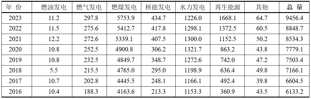中國(guó)一次能源發(fā)電進(jìn)程(單位:TWh)