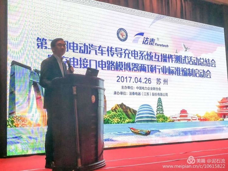 2017年4月26日,第二期電動汽車傳導(dǎo)充電系統(tǒng)互操作性測試活動總結(jié)會在蘇州召開,本次會議由中國電力企業(yè)聯(lián)合會標(biāo)準(zhǔn)化管理中心、能源行業(yè)電動汽車充電設(shè)施標(biāo)準(zhǔn)化技術(shù)委員會充電檢測認(rèn)證標(biāo)準(zhǔn)工作組、中國電動汽車充電基礎(chǔ)設(shè)施促進(jìn)聯(lián)盟標(biāo)準(zhǔn)實施促進(jìn)專業(yè)委員會聯(lián)合主辦,來自全國電動汽車行業(yè)、充電設(shè)施行業(yè)、電動汽車及充電設(shè)施檢測機(jī)構(gòu)及相關(guān)企業(yè)代表共150多人參加了會議。