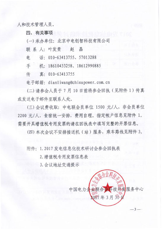 關(guān)于舉辦2017發(fā)電信息化技術(shù)研討會的通知