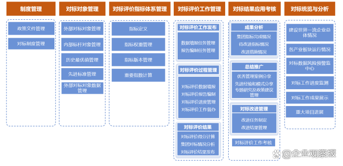 是不是世界一流企業(yè),關(guān)鍵看能夠拿出多少具有世界一流水平的“真東西”。這就必須通過與全球范圍內(nèi)的先進(jìn)企業(yè)對(duì)標(biāo)來驗(yàn)證。對(duì)標(biāo)的主要作用:一是明確企業(yè)在全球行業(yè)所處位置;二是明確企業(yè)優(yōu)勢(shì)與短板弱項(xiàng);三是提出改進(jìn)措施,持續(xù)改進(jìn)、追求卓越。對(duì)標(biāo)是重要基礎(chǔ)和抓手,為世界一流企業(yè)建設(shè)提供針對(duì)性更強(qiáng)、更專業(yè)的改進(jìn)建議。