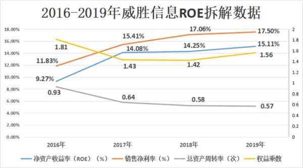 將威勝信息的ROE拆解成凈利率、總資產(chǎn)周轉(zhuǎn)率與權(quán)益乘數(shù)的乘積,我們會發(fā)現(xiàn):