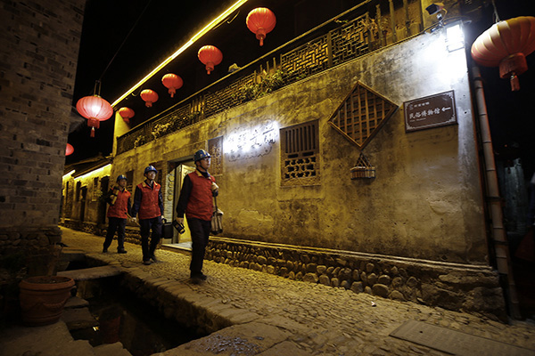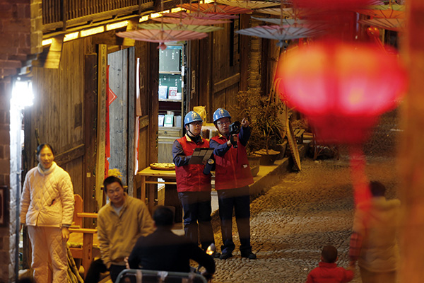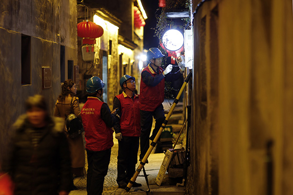 夜幕降臨,前童古鎮(zhèn)條條古巷的燈光開始亮起來,但古巷旁水渠里仍倒影著隊員們忙碌的身影。有了國網(wǎng)寧海縣供電公司工作人員不辭辛勞的保供電,留浙過年的新寧海人在前童古鎮(zhèn)這個元宵節(jié)將過得格外溫暖。